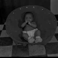 16. EAP054/1/103/16 Reference (shelfmark): EAP054/1/103/16 Title: Recreational photograph [c 1983-1984] Scope & Content: Baby in an armchair Format of original: 59mm x 59mm plastic negative Collection Area: Endangered Archives Programme Languages: Not applicable Date Range: 1983-1984 Extent: 1 TIFF image