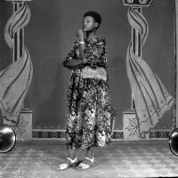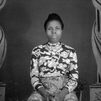 27. EAP054/1/132/27 Reference (shelfmark): EAP054/1/132/27 Title: Recreational photograph [c 1980] Scope & Content: Woman standing in floral dress, left hand on chin. Format of original: 59mm x 59mm plastic negative Collection Area: Endangered Archives Programme Languages: Not applicable Date Range: c 1980 Extent: 1 TIFF image