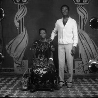 29. EAP054/1/132/29 Reference (shelfmark): EAP054/1/132/29 Title: Recreational photograph [c 1980] Scope & Content: Older woman sitting on a stool and a man standing next to her, his right hand on her shoulder. Format of original: 59mm x 59mm plastic negative Collection Area: Endangered Archives Programme Languages: Not applicable Date Range: c 1980 Extent: 1 TIFF image