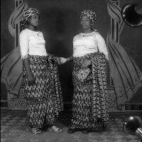 134. EAP054/1/132/134 Reference (shelfmark): EAP054/1/132/134 Title: Recreational photograph [c 1980] Scope & Content: 2 women in matching outfits Format of original: 59mm x 59mm plastic negative Collection Area: Endangered Archives Programme Languages: Not applicable Date Range: c 1980 Extent: 1 TIFF image