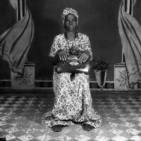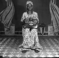 155. EAP054/1/132/155 Reference (shelfmark): EAP054/1/132/155 Title: Recreational photograph [c 1980] Scope & Content: Woman sitting holding handbag in her lap and by decorated gourd Format of original: 59mm x 59mm plastic negative Collection Area: Endangered Archives Programme Languages: Not applicable Date Range: c 1980 Extent: 1 TIFF image
