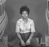 157. EAP054/1/132/157 Reference (shelfmark): EAP054/1/132/157 Title: Recreational photograph [c 1980] Scope & Content: Woman sitting holding handbag in her lap Format of original: 59mm x 59mm plastic negative Collection Area: Endangered Archives Programme Languages: Not applicable Date Range: c 1980 Extent: 1 TIFF image