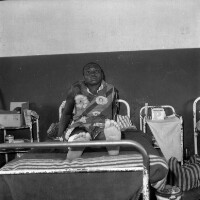 436. EAP054/1/132/436 Reference (shelfmark): EAP054/1/132/436 Title: Photo of record [c 1980] Scope & Content: Patient sitting on hospital bed. Format of original: 59mm x 59mm plastic negative Collection Area: Endangered Archives Programme Languages: Not applicable Date Range: c 1980 Extent: 1 TIFF image