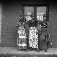 561. EAP054/1/132/561 Reference (shelfmark): EAP054/1/132/561 Title: Recreational photograph [c 1980] Scope & Content: 3 women from Mbouda standing in front of glazed window, all in "pagne" skirts and headscarves. Format of original: 59mm x 59mm plastic negative Collection Area: Endangered Archives Programme Languages: Not applicable Date Range: c 1980 Extent: 1 TIFF image