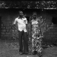 612. EAP054/1/132/612 Reference (shelfmark): EAP054/1/132/612 Title: Recreational photograph [c 1980] Scope & Content: Couple from Babete standing, in front of mud brick house with corrugated roof. Format of original: 59mm x 59mm plastic negative Collection Area: Endangered Archives Programme Languages: Not applicable Date Range: c 1980 Extent: 1 TIFF image