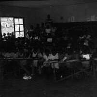 620. EAP054/1/132/620 Reference (shelfmark): EAP054/1/132/620 Title: Recreational photograph [c 1980] Scope & Content: Schoolroom in Bamesso, children sitting at desks. Format of original: 59mm x 59mm plastic negative Collection Area: Endangered Archives Programme Languages: Not applicable Date Range: c 1980 Extent: 1 TIFF image