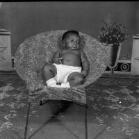78. EAP054/1/132/78 Reference (shelfmark): EAP054/1/132/78 Title: Recreational photograph [c 1980] Scope & Content: Baby lying in an armchair, chest bare. Format of original: 59mm x 59mm plastic negative Collection Area: Endangered Archives Programme Languages: Not applicable Date Range: c 1980 Extent: 1 TIFF image