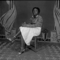 169. EAP054/1/134/169 Reference (shelfmark): EAP054/1/134/169 Title: Recreational photograph [c 1980] Scope & Content: Woman sitting on a stool, legs crossed. Format of original: 59mm x 59mm plastic negative Collection Area: Endangered Archives Programme Languages: Not applicable Date Range: c 1980 Extent: 1 TIFF image