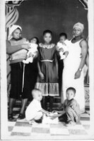 25. EAP054/1/135/25 Reference (shelfmark): EAP054/1/135/25 Title: Recreational photograph [c 1981] Scope & Content: 3 women standing, 2 holding babies and 2 children crouching in front with a toy Format of original: 63mm x 42mm Print Collection Area: Endangered Archives Programme Languages: Not applicable Date Range: c 1981 Extent: 1 TIFF image