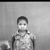 289. EAP054/1/138/289 Reference (shelfmark): EAP054/1/138/289 Title: Recreational photograph [c 1981-1982] Scope & Content: Girl standing, right hand on black and white armchair. (Mimi?) Format of original: 59mm x 59mm plastic negative Collection Area: Endangered Archives Programme Languages: Not applicable Date Range: 1981-1982 Extent: 1 TIFF image