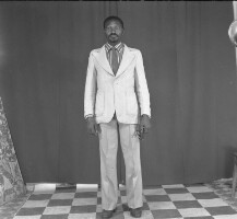 431. EAP054/1/140/431 Reference (shelfmark): EAP054/1/140/431 Title: Recreational photograph [c 1984] Scope & Content: Man from Babete standing in white jacket. Format of original: 55mm x 59mm plastic negative Collection Area: Endangered Archives Programme Languages: Not applicable Date Range: c 1984 Extent: 1 TIFF image