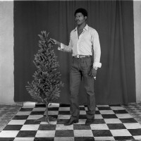 456. EAP054/1/140/456 Reference (shelfmark): EAP054/1/140/456 Title: Recreational photograph [c 1984] Scope & Content: Man standing in white shirt, right hand on plastic tree. Format of original: 59mm x 59mm plastic negative Collection Area: Endangered Archives Programme Languages: Not applicable Date Range: c 1984 Extent: 1 TIFF image