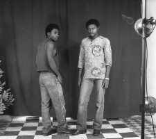 475. EAP054/1/140/475 Reference (shelfmark): EAP054/1/140/475 Title: Recreational photograph [c 1984] Scope & Content: 2 boys standing, one in sleeveless shirt and the other in patterned "boubou" shirt. Format of original: 53mm x 59mm plastic negative Collection Area: Endangered Archives Programme Languages: Not applicable Date Range: c 1984 Extent: 1 TIFF image
