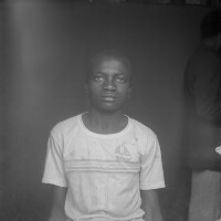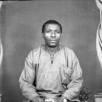 2 women standing, in matching patterned white blouses and dark skirts, holding right hands, a sign of greeting. Format of original: 59mm x 59mm plastic negative