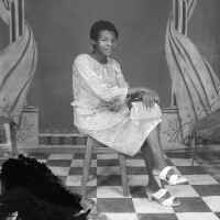132. EAP054/1/156/132 Reference (shelfmark): EAP054/1/156/132 Title: Recreational photograph [c 1981] Scope & Content: Woman sitting on a stool, hands and legs crossed, holding handbag on her knee. Format of original: 59mm x 59mm plastic negative Collection Area: Endangered Archives Programme Languages: Not applicable Date Range: c 1981 Extent: 1 TIFF image