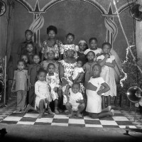 133. EAP054/1/156/133 Reference (shelfmark): EAP054/1/156/133 Title: Recreational photograph [c 1981] Scope & Content: 18 people: 2 women sitting, one holding a baby, the others standing, crouching or kneeling. Format of original: 59mm x 59mm plastic negative Collection Area: Endangered Archives Programme Languages: Not applicable Date Range: c 1981 Extent: 1 TIFF image