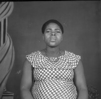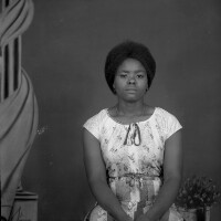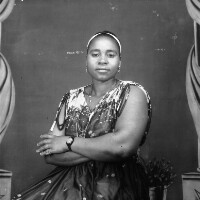100. EAP054/1/158/100 Reference (shelfmark): EAP054/1/158/100 Title: Recreational photograph [c 1980] Scope & Content: Woman from Balatchi standing, hand on hip Format of original: 59mm x 59mm plastic negative Collection Area: Endangered Archives Programme Languages: Not applicable Date Range: c 1980 Extent: 1 TIFF image