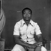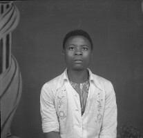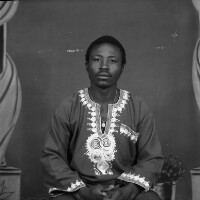 145. EAP054/1/158/145 Reference (shelfmark): EAP054/1/158/145 Title: Recreational photograph [c 1980] Scope & Content: Man from Mbouda standing Format of original: 59mm x 59mm plastic negative Collection Area: Endangered Archives Programme Languages: Not applicable Date Range: c 1980 Extent: 1 TIFF image
