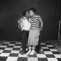 390. EAP054/1/163/390 Reference (shelfmark): EAP054/1/163/390 Title: Recreational photograph [c 1983] Scope & Content: Couple sitting, woman sitting on the knee of a man Format of original: 59mm x 59mm plastic negative Collection Area: Endangered Archives Programme Languages: Not applicable Date Range: c 1983 Extent: 1 TIFF image
