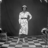 429. EAP054/1/163/429 Reference (shelfmark): EAP054/1/163/429 Title: Recreational photograph [c 1983] Scope & Content: Woman standing, hand on hip Format of original: 59mm x 59mm plastic negative Collection Area: Endangered Archives Programme Languages: Not applicable Date Range: c 1983 Extent: 1 TIFF image