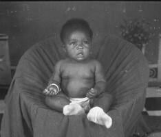 268. EAP054/1/164/268 Reference (shelfmark): EAP054/1/164/268 Title: Recreational photograph [c 1982] Scope & Content: Baby in an armchair Format of original: 51mm x 59mm plastic negative Collection Area: Endangered Archives Programme Languages: Not applicable Date Range: c 1982 Extent: 1 TIFF image