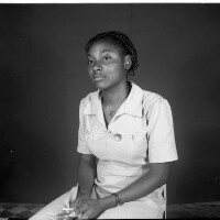 137. EAP054/1/167/137 Reference (shelfmark): EAP054/1/167/137 Title: Recreational photograph [c 1983] Scope & Content: Girl from Bagam, white top, hands joined, simple plaits. Format of original: 59mm x 59mm plastic negative Collection Area: Endangered Archives Programme Languages: Not applicable Date Range: c 1983 Extent: 1 TIFF image