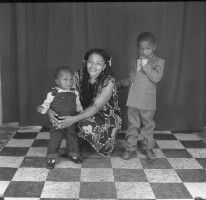 543. EAP054/1/170/543 Reference (shelfmark): EAP054/1/170/543 Title: Recreational photograph [c 1985] Scope & Content: Woman crouching with baby and male child Format of original: 58mm x 59mm plastic negative Collection Area: Endangered Archives Programme Languages: Not applicable Date Range: c 1985 Extent: 1 TIFF image