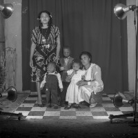 544. EAP054/1/170/544 Reference (shelfmark): EAP054/1/170/544 Title: Recreational photograph [c 1985] Scope & Content: Woman standing and woman crouching with baby and 2 male children Format of original: 59mm x 59mm plastic negative Collection Area: Endangered Archives Programme Languages: Not applicable Date Range: c 1985 Extent: 1 TIFF image