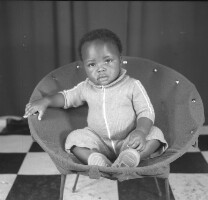 109. EAP054/1/170/109 Reference (shelfmark): EAP054/1/170/109 Title: Recreational photograph [c 1985] Scope & Content: Baby in an armchair. Format of original: 57mm x 59mm plastic negative Collection Area: Endangered Archives Programme Languages: Not applicable Date Range: c 1985 Extent: 1 TIFF image