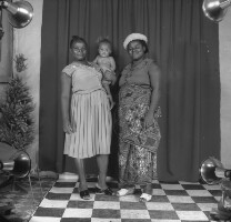 119. EAP054/1/170/119 Reference (shelfmark): EAP054/1/170/119 Title: Recreational photograph [c 1985] Scope & Content: 2 women standing, one holding a baby Format of original: 57mm x 59mm plastic negative Collection Area: Endangered Archives Programme Languages: Not applicable Date Range: c 1985 Extent: 1 TIFF image