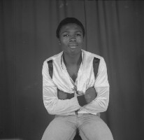 137. EAP054/1/170/137 Reference (shelfmark): EAP054/1/170/137 Title: Recreational photograph [c 1985] Scope & Content: Young man from Batcham standing with guitar over shoulder Format of original: 57mm x 59mm plastic negative Collection Area: Endangered Archives Programme Languages: Not applicable Date Range: c 1985 Extent: 1 TIFF image