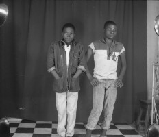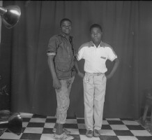 143. EAP054/1/170/143 Reference (shelfmark): EAP054/1/170/143 Title: Recreational photograph [c 1985] Scope & Content: 2 young men standing Format of original: 54mm x 59mm plastic negative Collection Area: Endangered Archives Programme Languages: Not applicable Date Range: c 1985 Extent: 1 TIFF image