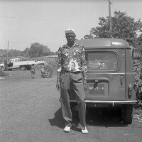 204. EAP054/1/170/204 Reference (shelfmark): EAP054/1/170/204 Title: Recreational photograph [c 1985] Scope & Content: Man standing by a Renault 4 car Format of original: 59mm x 59mm plastic negative Collection Area: Endangered Archives Programme Languages: Not applicable Date Range: c 1985 Extent: 1 TIFF image