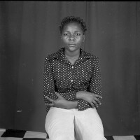 201. EAP054/1/170/201 Reference (shelfmark): EAP054/1/170/201 Title: Recreational photograph [c 1985] Scope & Content: Woman standing, crossed arms Format of original: 54mm x 59mm plastic negative Collection Area: Endangered Archives Programme Languages: Not applicable Date Range: c 1985 Extent: 1 TIFF image