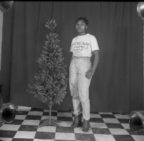 253. EAP054/1/170/253 Reference (shelfmark): EAP054/1/170/253 Title: Recreational photograph [c 1985] Scope & Content: Young woman standing by a plastic tree Format of original: 58mm x 59mm plastic negative Collection Area: Endangered Archives Programme Languages: Not applicable Date Range: c 1985 Extent: 1 TIFF image