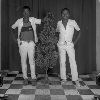 257. EAP054/1/170/257 Reference (shelfmark): EAP054/1/170/257 Title: Recreational photograph [c 1985] Scope & Content: 2 boys standing either side of a plastic tree Format of original: 59mm x 59mm plastic negative Collection Area: Endangered Archives Programme Languages: Not applicable Date Range: c 1985 Extent: 1 TIFF image