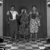 287. EAP054/1/170/287 Reference (shelfmark): EAP054/1/170/287 Title: Recreational photograph [c 1985] Scope & Content: 2 young women standing either side of a plastic tree Format of original: 59mm x 59mm plastic negative Collection Area: Endangered Archives Programme Languages: Not applicable Date Range: c 1985 Extent: 1 TIFF image