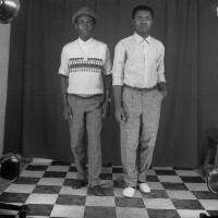 393. EAP054/1/170/393 Reference (shelfmark): EAP054/1/170/393 Title: Recreational photograph [c 1985] Scope & Content: 2 young men standing Format of original: 59mm x 59mm plastic negative Collection Area: Endangered Archives Programme Languages: Not applicable Date Range: c 1985 Extent: 1 TIFF image