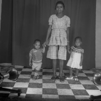 412. EAP054/1/170/412 Reference (shelfmark): EAP054/1/170/412 Title: Recreational photograph [c 1985] Scope & Content: Young woman standing holding hands of 2 children also standing. Format of original: 59mm x 59mm plastic negative Collection Area: Endangered Archives Programme Languages: Not applicable Date Range: c 1985 Extent: 1 TIFF image