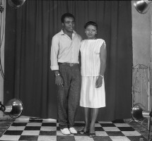 67. EAP054/1/170/67 Reference (shelfmark): EAP054/1/170/67 Title: Recreational photograph [c 1985] Scope & Content: Couple standing Format of original: 55mm x 59mm plastic negative Collection Area: Endangered Archives Programme Languages: Not applicable Date Range: c 1985 Extent: 1 TIFF image