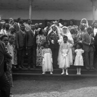 23. EAP054/1/171/23 Reference (shelfmark): EAP054/1/171/23 Title: Recreational photograph [c 1986] Scope & Content: Wedding photo, bridal couple with bridesmaids, pages and guests Format of original: 59mm x 59mm plastic negative Collection Area: Endangered Archives Programme Languages: Not applicable Date Range: c 1986 Extent: 1 TIFF image