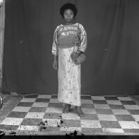 29. EAP054/1/171/29 Reference (shelfmark): EAP054/1/171/29 Title: Recreational photograph [c 1986] Scope & Content: Women from Mbouda standing holding a handbag Format of original: 59mm x 59mm plastic negative Collection Area: Endangered Archives Programme Languages: Not applicable Date Range: c 1986 Extent: 1 TIFF image