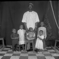155. EAP054/1/173/155 Reference (shelfmark): EAP054/1/173/155 Title: Recreational photograph [c 1989] Scope & Content: Man standing with 5 children Format of original: 59mm x 59mm plastic negative Collection Area: Endangered Archives Programme Languages: Not applicable Date Range: c 1989 Extent: 1 TIFF image