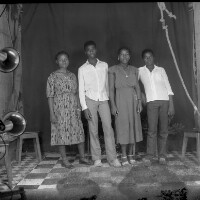156. EAP054/1/173/156 Reference (shelfmark): EAP054/1/173/156 Title: Recreational photograph [c 1989] Scope & Content: 2 young couples standing Format of original: 59mm x 59mm plastic negative Collection Area: Endangered Archives Programme Languages: Not applicable Date Range: c 1989 Extent: 1 TIFF image
