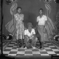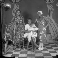 283. EAP054/1/30/283 Reference (shelfmark): EAP054/1/30/283 Title: Recreational photograph [c 1981] Scope & Content: Woman sitting with baby between 2 female children standing Format of original: 59mm x 59mm plastic negative Collection Area: Endangered Archives Programme Languages: Not applicable Date Range: c 1981 Extent: 1 TIFF image