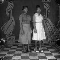 296. EAP054/1/30/296 Reference (shelfmark): EAP054/1/30/296 Title: Recreational photograph [c 1981] Scope & Content: 2 women standing Format of original: 59mm x 59mm plastic negative Collection Area: Endangered Archives Programme Languages: Not applicable Date Range: c 1981 Extent: 1 TIFF image