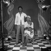 346. EAP054/1/30/346 Reference (shelfmark): EAP054/1/30/346 Title: Recreational photograph [c 1981] Scope & Content: Man standing by woman sitting Format of original: 59mm x 59mm plastic negative Collection Area: Endangered Archives Programme Languages: Not applicable Date Range: c 1981 Extent: 1 TIFF image