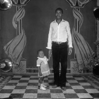 352. EAP054/1/30/352 Reference (shelfmark): EAP054/1/30/352 Title: Recreational photograph [c 1981] Scope & Content: Man standing by child Format of original: 59mm x 59mm plastic negative Collection Area: Endangered Archives Programme Languages: Not applicable Date Range: c 1981 Extent: 1 TIFF image