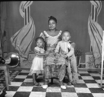 353. EAP054/1/30/353 Reference (shelfmark): EAP054/1/30/353 Title: Recreational photograph [c 1981] Scope & Content: Woman sitting with 2 children Format of original: 55mm x 59mm plastic negative Collection Area: Endangered Archives Programme Languages: Not applicable Date Range: c 1981 Extent: 1 TIFF image