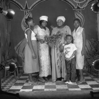 356. EAP054/1/30/356 Reference (shelfmark): EAP054/1/30/356 Title: Recreational photograph [c 1981] Scope & Content: 4 women standing and male child Format of original: 59mm x 59mm plastic negative Collection Area: Endangered Archives Programme Languages: Not applicable Date Range: c 1981 Extent: 1 TIFF image